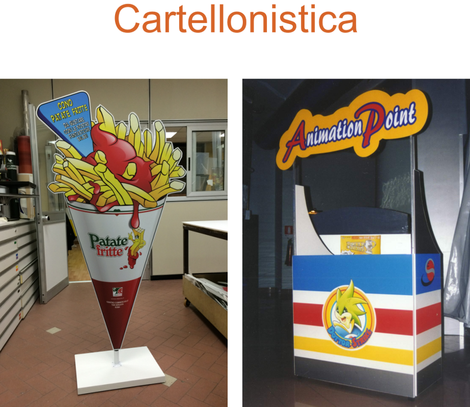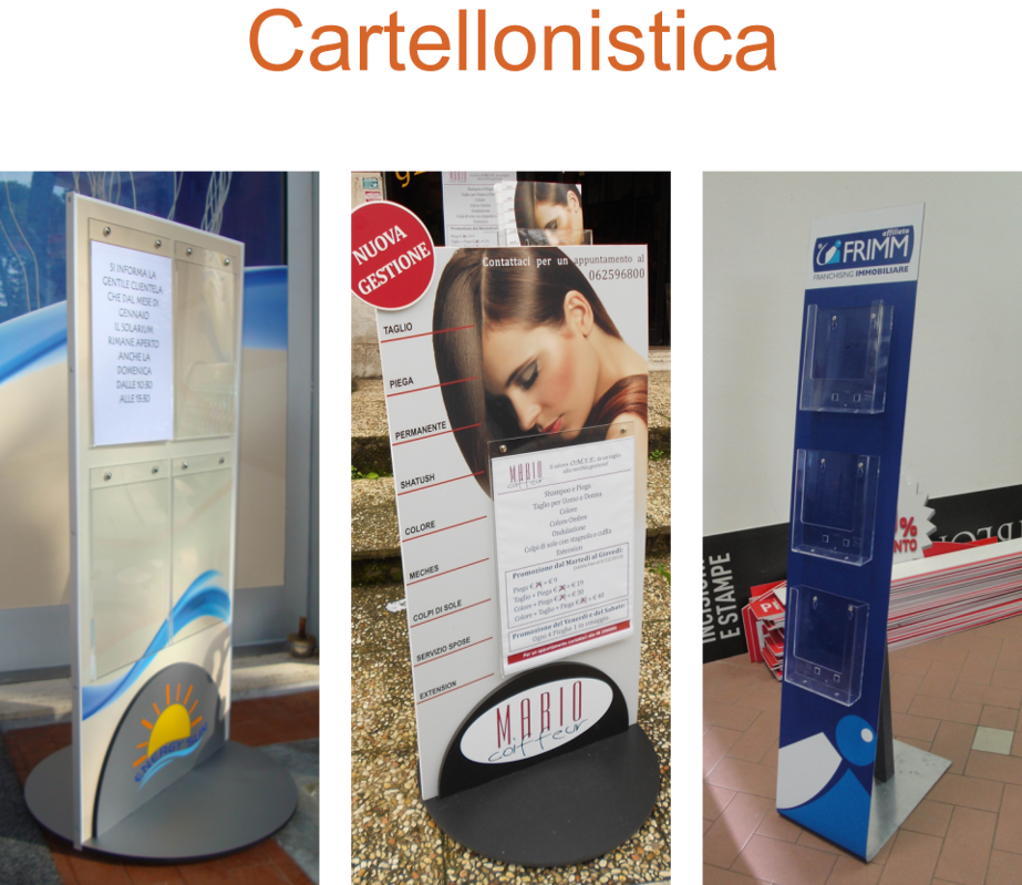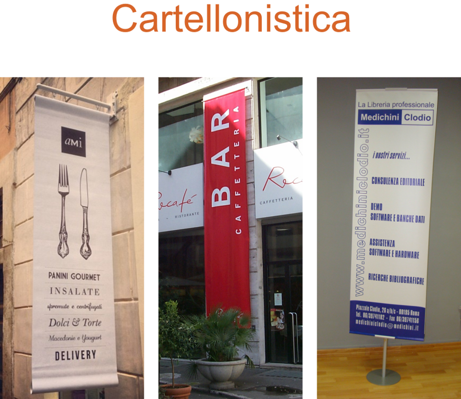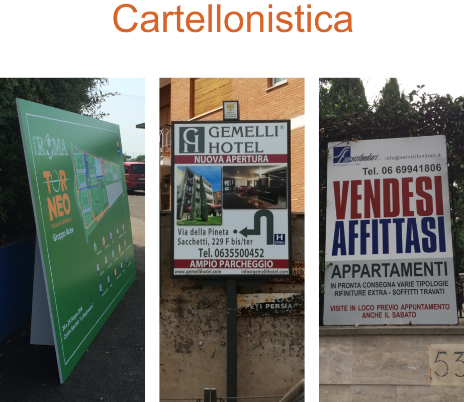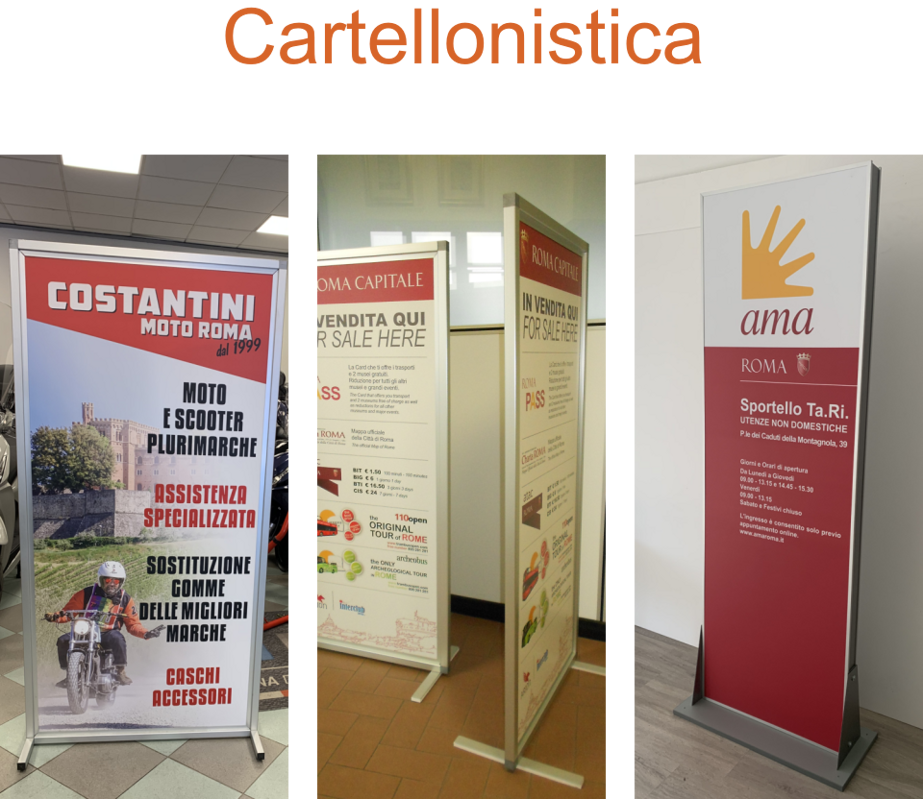 Progettazione e realizzazione di cartelli, pannelli fieristici, strutture pubblicitarie, totem, rollup, banner e stendardi in pvc.