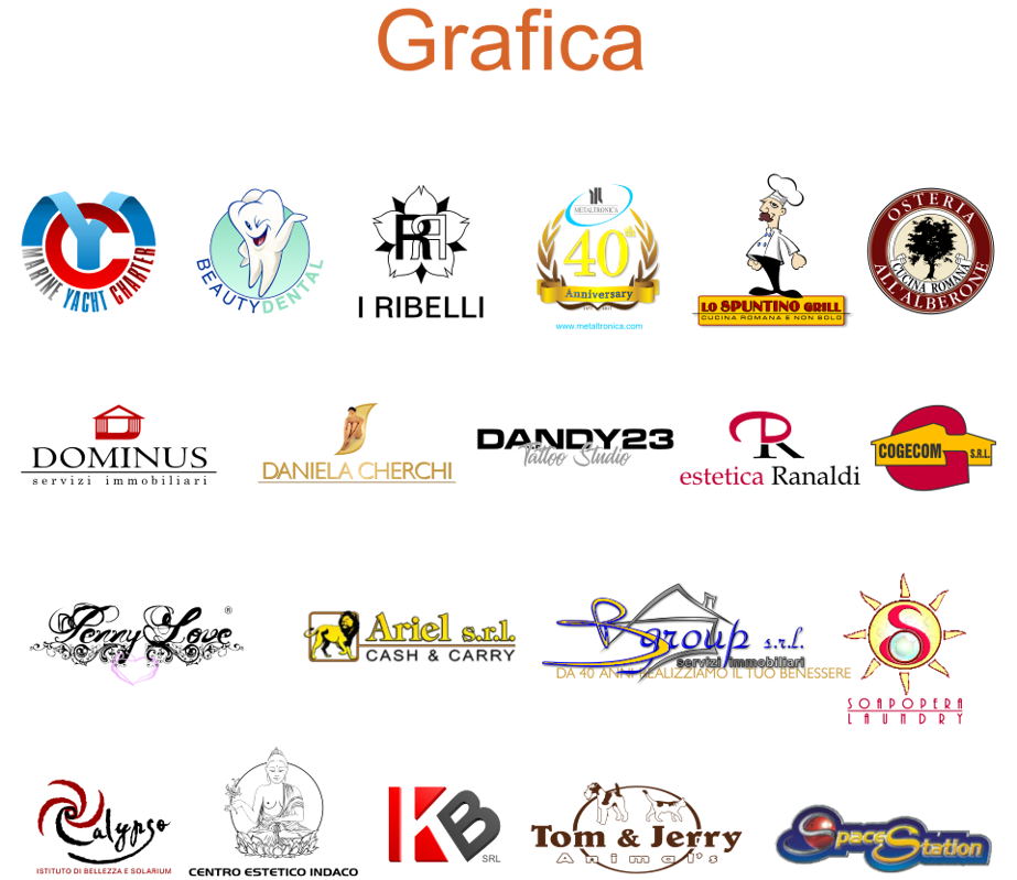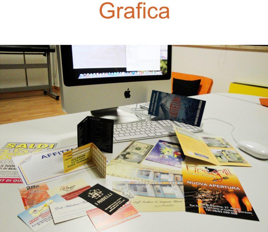 Progettazione grafica di logo, coordinati aziendali, bigliettini da visita, volantini, flyers, pieghevoli, brochure, riviste, locandine e manifesti.