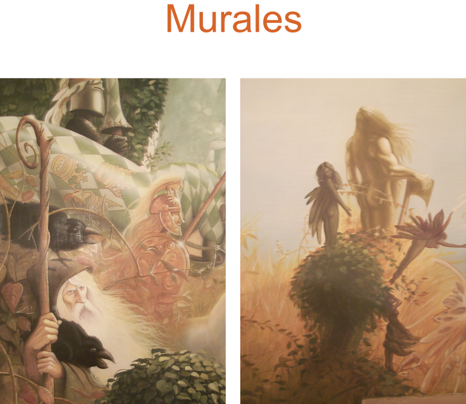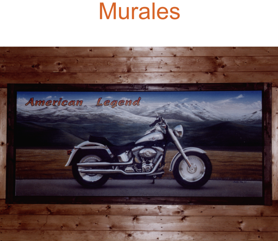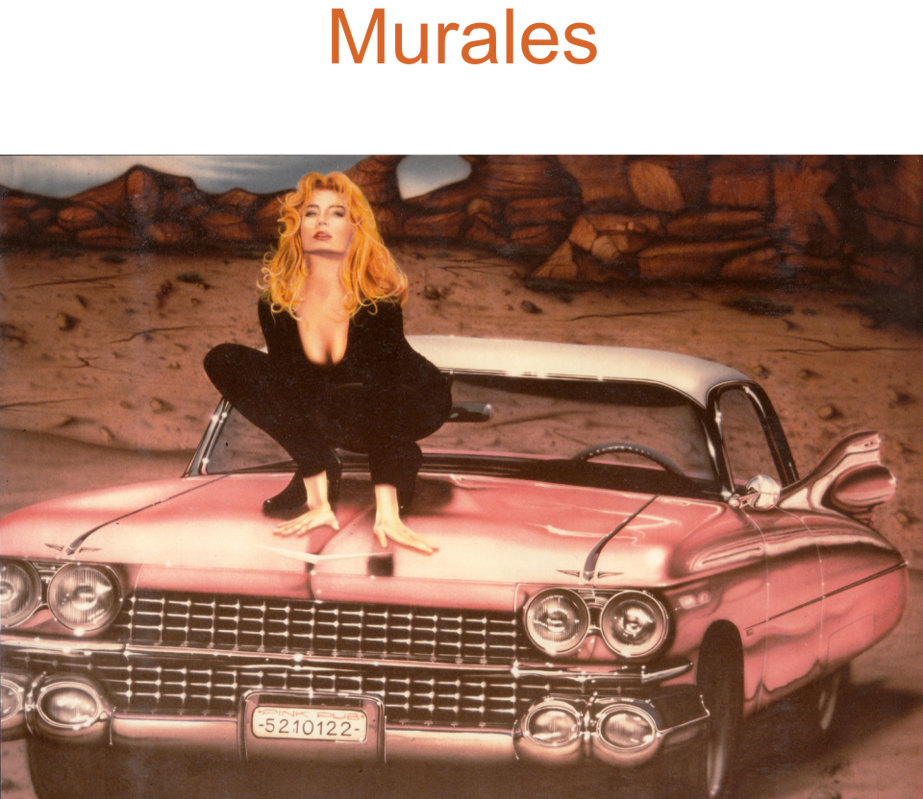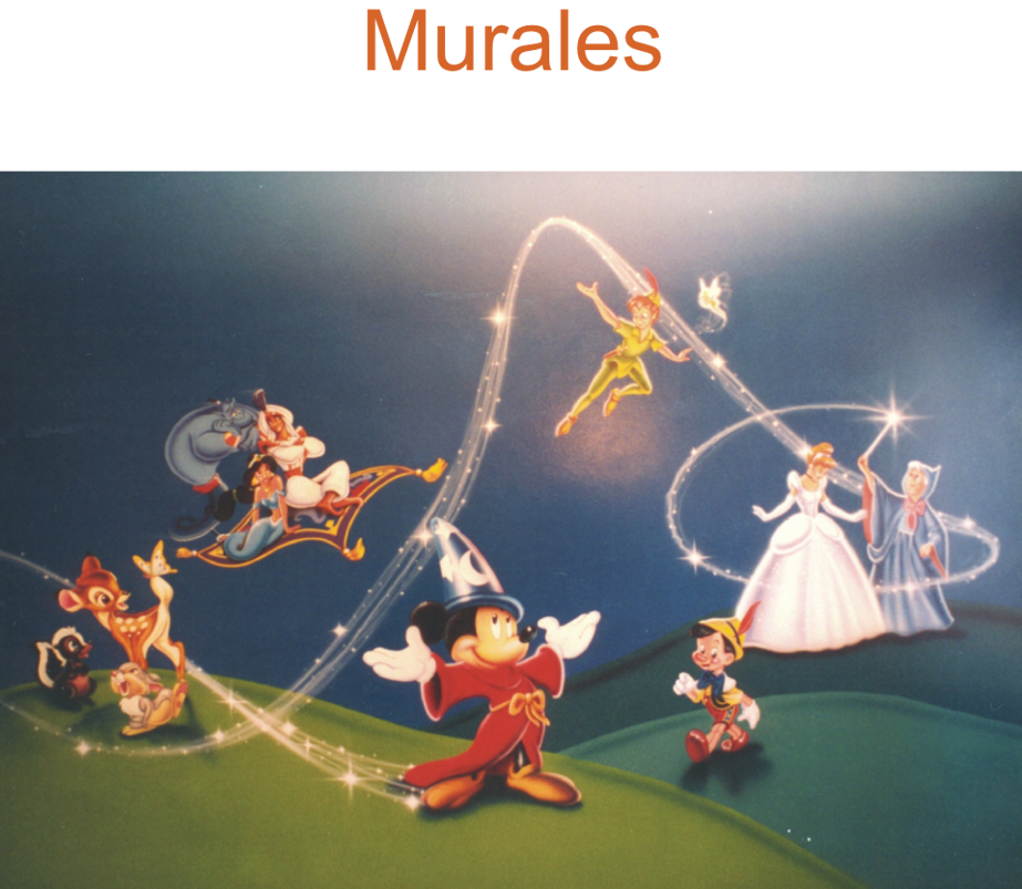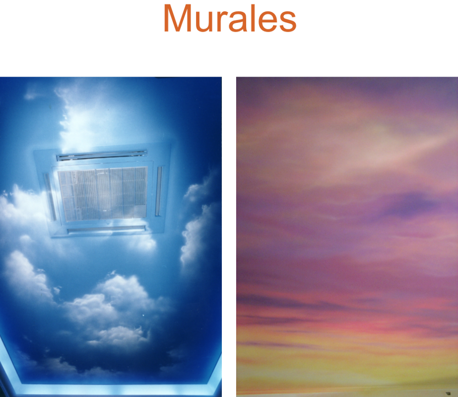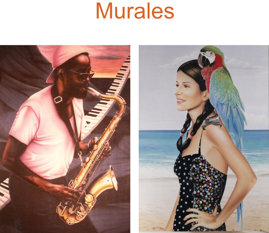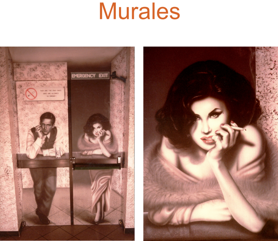 Progettazione e realizzazione di murales con tecnica mista pennello e aerografo su pareti, soffitti, pannelli per attività commerciali o appartamenti.