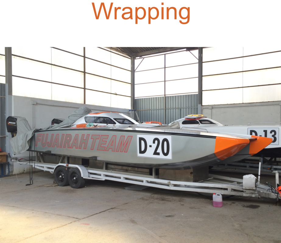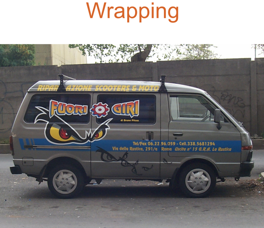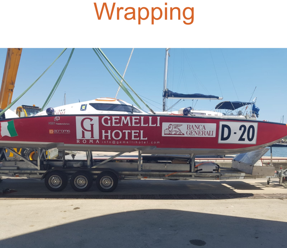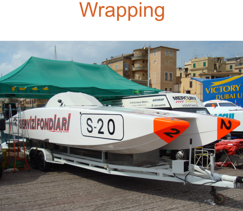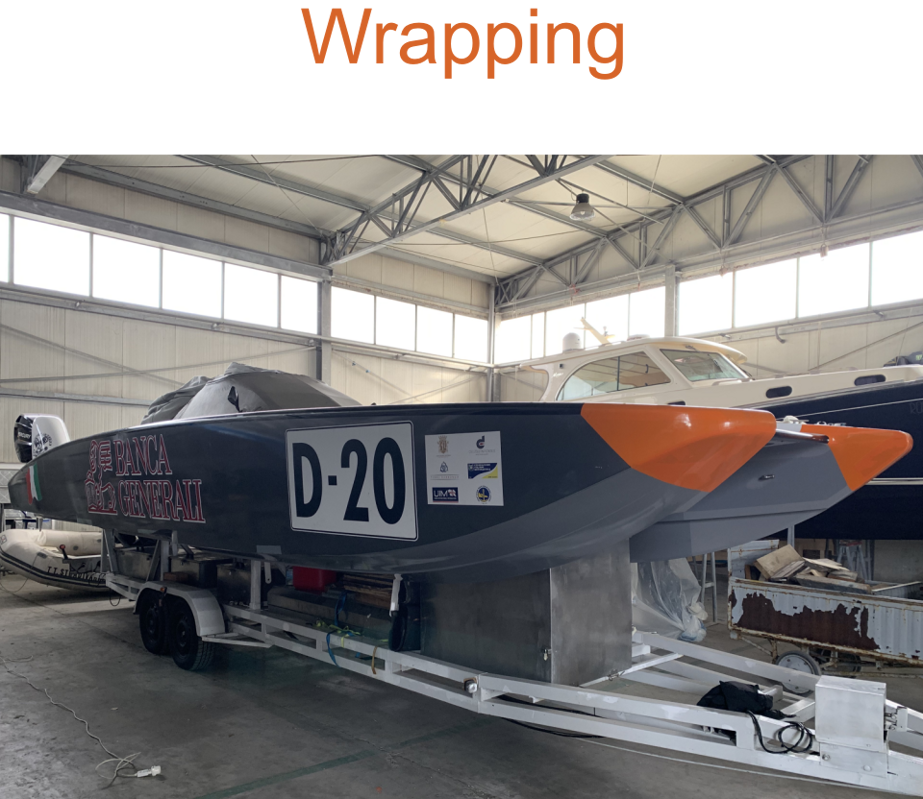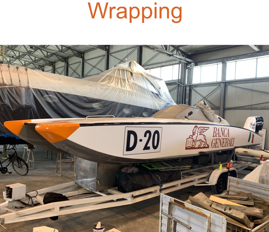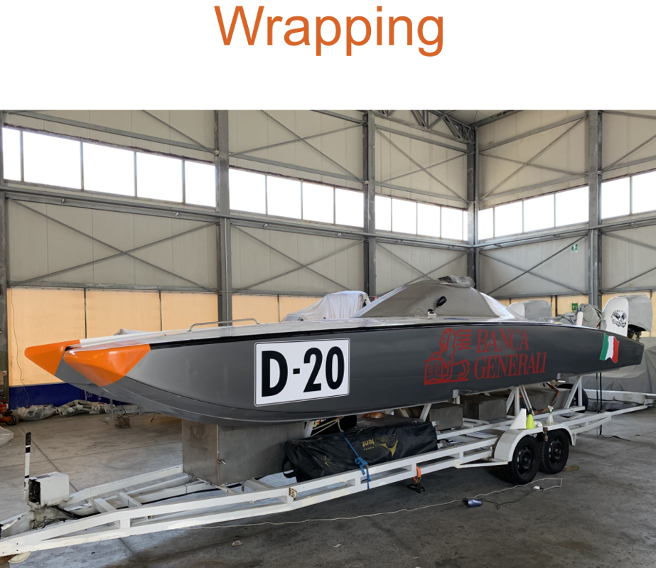 Allestimenti grafici con applicazione di pellicole e grafica adesiva per autoveicoli e natanti.